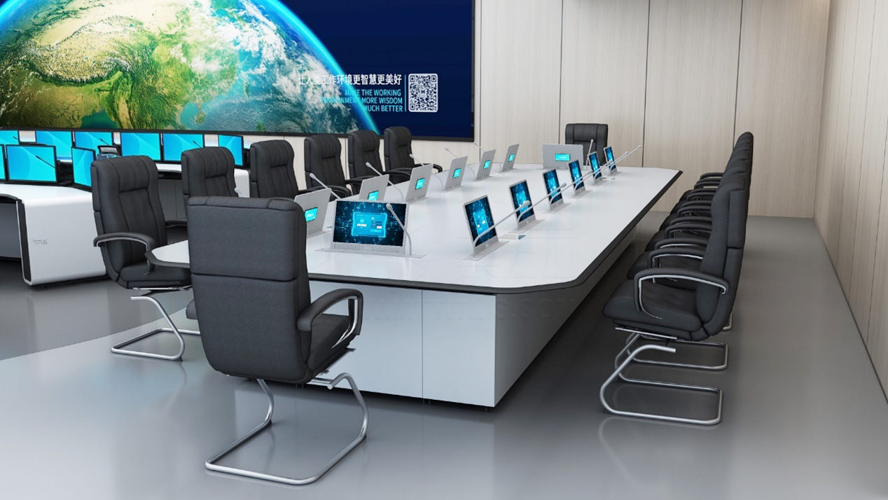 鐵力山結(jié)合公共衛(wèi)生應(yīng)急指揮中心空間環(huán)境及裝修風(fēng)格,充分考慮行業(yè)工作特性,選用鐵力山家族化語言設(shè)計的“領(lǐng)帥”控制臺及同系條桌、會議產(chǎn)品,滿足指揮中心建設(shè)美觀性、實用性、智慧性的多重要求,實現(xiàn)多功能的應(yīng)急指揮場景需求,滿足疫情信息收集、分析研判、監(jiān)測預(yù)警、指揮調(diào)度、決策部署、視頻會商等功能應(yīng)用。