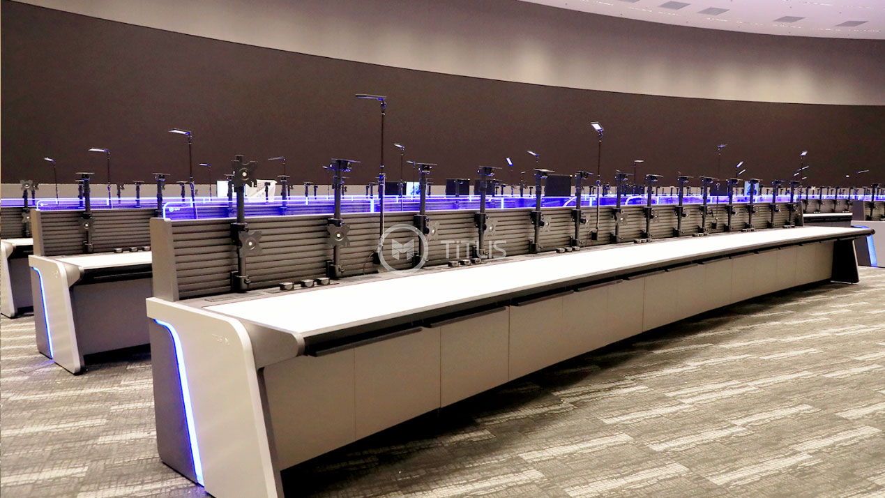 在本次市域鐵路指揮中心建設(shè)中,選用鐵力山“經(jīng)典”系列控制臺實現(xiàn)全場景定制化設(shè)計,“經(jīng)典”系列控制臺采用現(xiàn)代感的設(shè)計風格,外觀整潔美觀,與室內(nèi)環(huán)境達到協(xié)調(diào)統(tǒng)一,靈活的模塊化結(jié)構(gòu),使其能夠滿足各種復(fù)雜和多變的監(jiān)控環(huán)境需求,方便后期添加設(shè)備或改變布置方式,為指揮中心長期發(fā)展提供便利。
